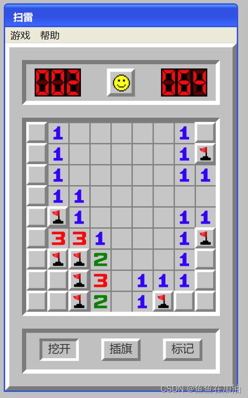 难度选择:点击「初级」「中级」「高级」或「自定义」按钮,调整网格大小、地雷数量等参数;