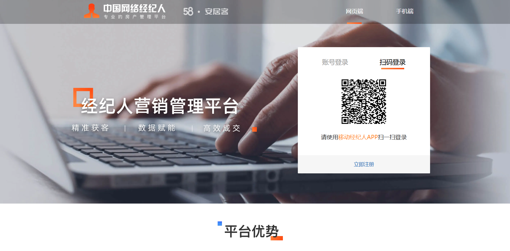 扫码验证:打开安居客 / 58 同城 APP 的 “移动经纪人” 模块,扫描网页版动态二维码完成登录。