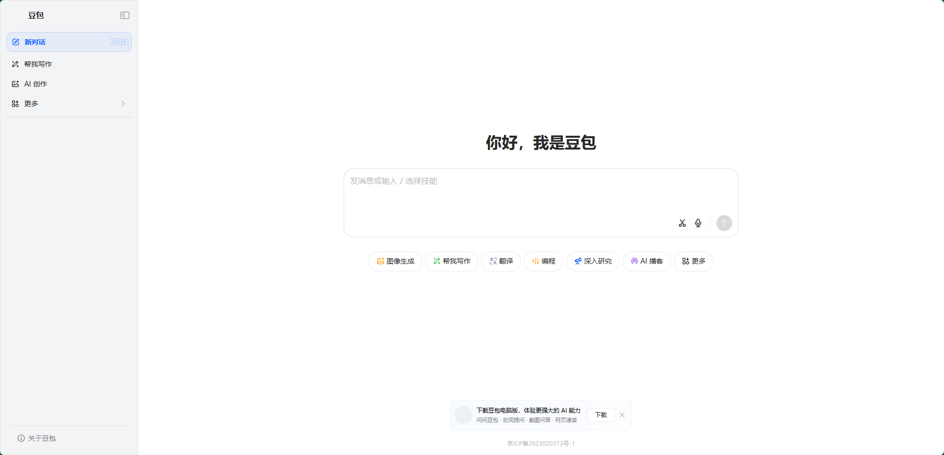 步骤4:登录成功后,直接进入豆包AI在线聊天界面,可直接输入需求与AI交互。