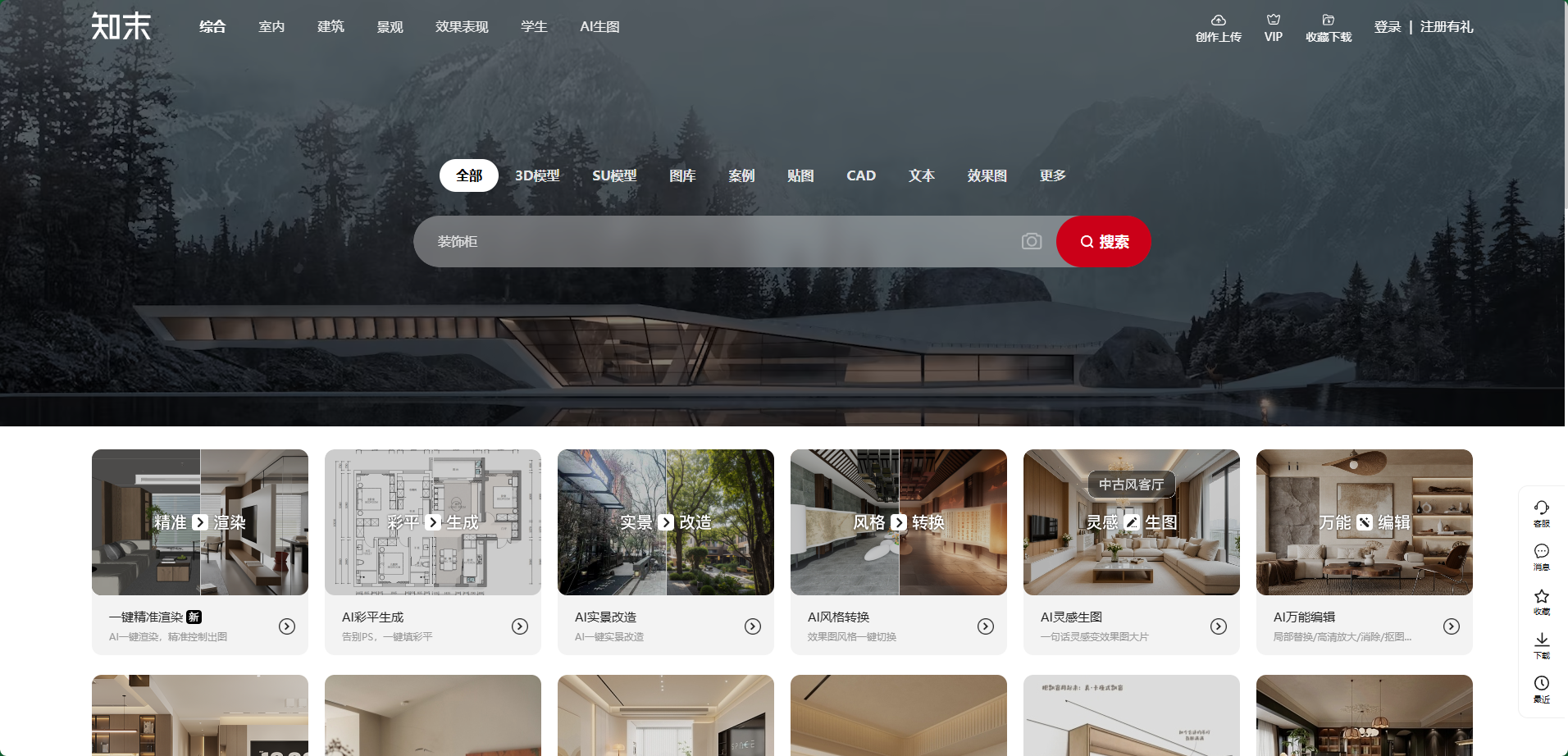 1. 在首页顶部搜索框输入关键词(比如“卧室SU模型”“CAD平面布局图”);
