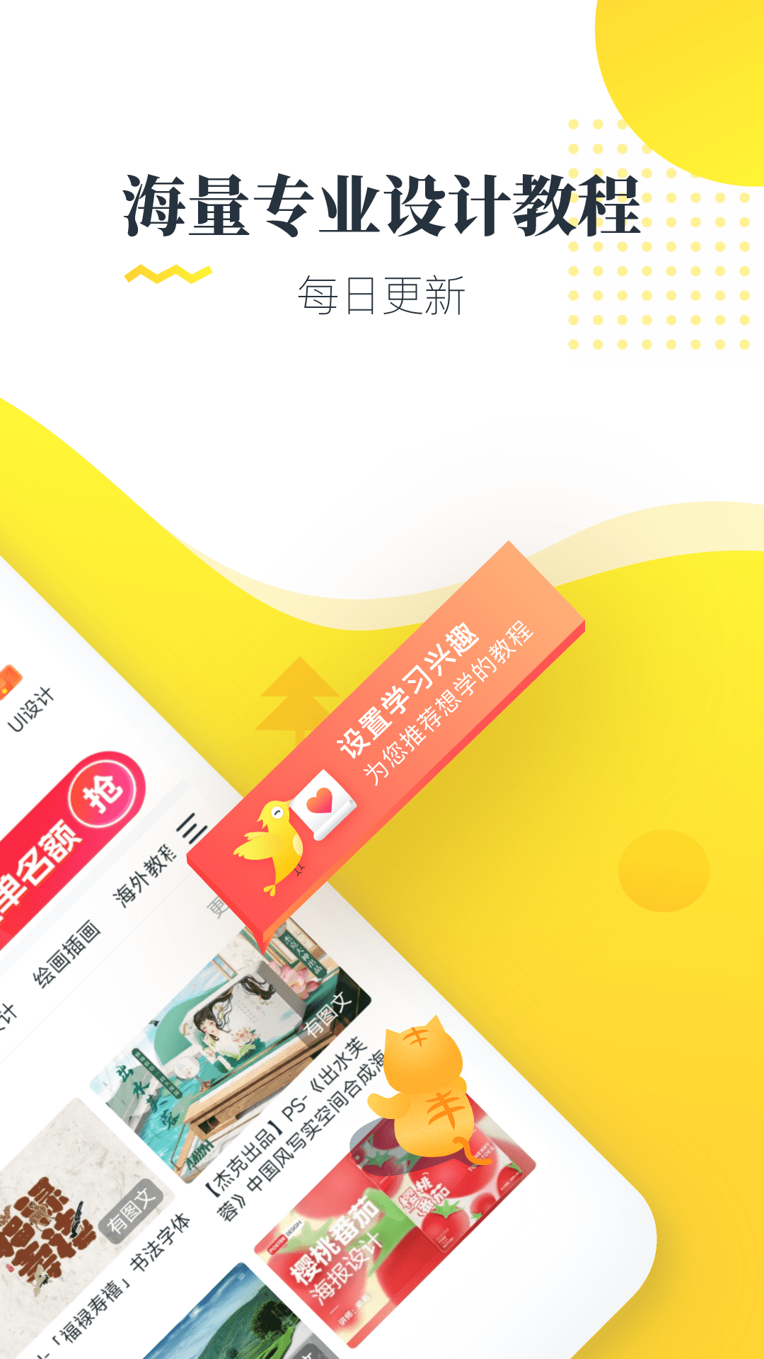 虎课app抱着高端设计平民化的宗旨,提供海量高清短视频教学以及配套图文教程,致力于打造最大的创意设计教育平台,让设计师以及设计爱好者可以学得好,学得起,随时随地随心学。