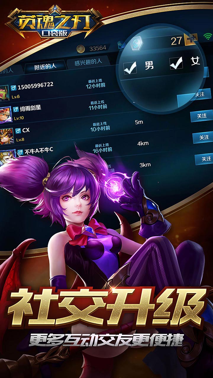 在英魂之刃中,丰富的社交系统可以让您和游戏内好友亲密互动,增加更多交流话题。本次更新后,竞技模式增加了结算点赞功能,战斗结束后,哪怕是这场战斗的对手,也别忘了给他精彩表现点赞哦~;追踪大神玩家,观战精彩视频,如果喜欢这个大神的视频别忘了点个赞鼓励他一下啦!还可以加入公会共同成长,海量任务竞赛奖励等你拿;除此之外,也可以邀请您身边的好友一起加入英魂并肩作战。