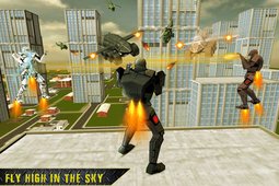 变形战斗:飞行中变形为机器人形态,用机械臂摧毁敌方建筑或车辆。
