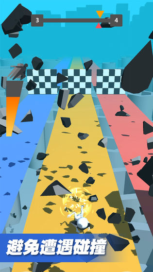 3、快去游戏中不断地撞击障碍,防止它们阻碍到你,通过挑战越快,你获得的得分越多。