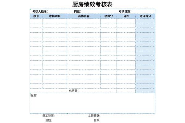 厨房绩效考核表通用技巧