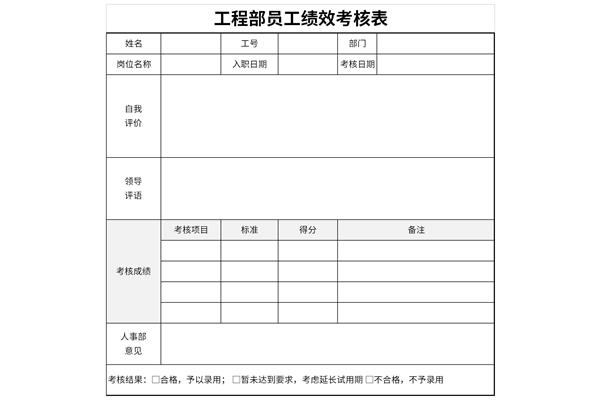 工程部员工绩效考核表评论