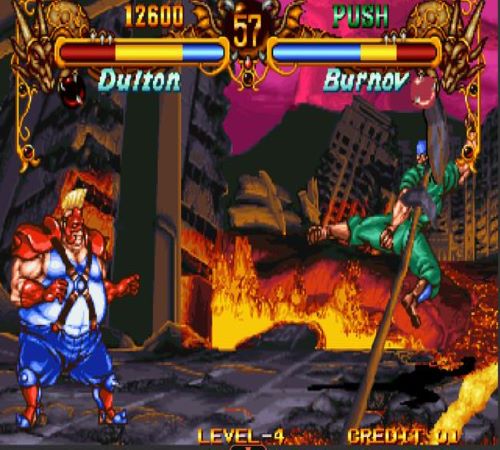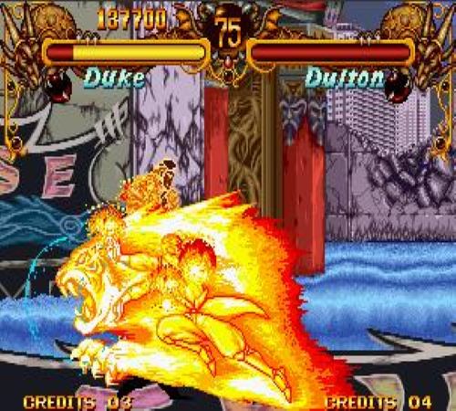 《双截龙格斗》说起格斗游戏就不能不说这款游戏,刚接触的时候我一直不明白这款游戏和小时候红白机上玩的双截龙到底有什么联系,后来才知道这款格斗游戏的主角就是FC双截龙的主角,我不知道大家玩这款游戏的多不多,我自认为这是我玩的最好的一款格斗游戏,在我看来此游戏是连技击的开山鼻祖,华丽的画面,玄目的连招,第一次知道必杀可以这样发。