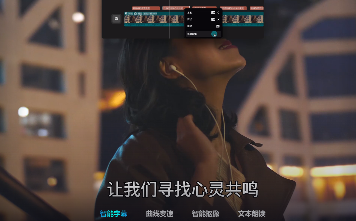 智能辅助:具备智能剪辑、智能字幕、语音识别等功能,大幅提升创作效率。例如,智能字幕可自动识别视频中的语音并生成字幕,节省手动输入时间。
