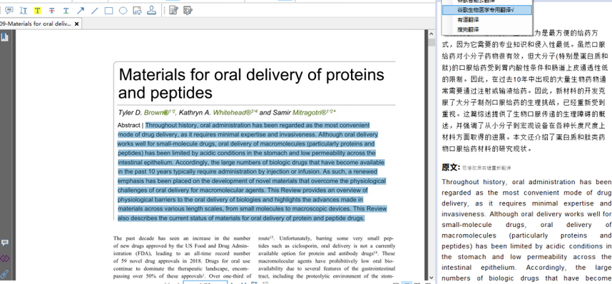 右上方翻译引擎选项中有五个翻译引擎可供切换。支持百度、谷歌、谷歌生物医学专用翻译、有道翻译、搜狗翻译,总能满足你的喜好。
