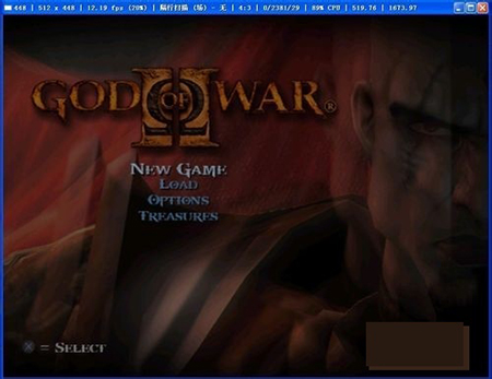 6、这样我们就能载入这款ps2游戏了,这里我们测试的战神2汉化版,很经典的一款ps2游戏,完美运行了。
