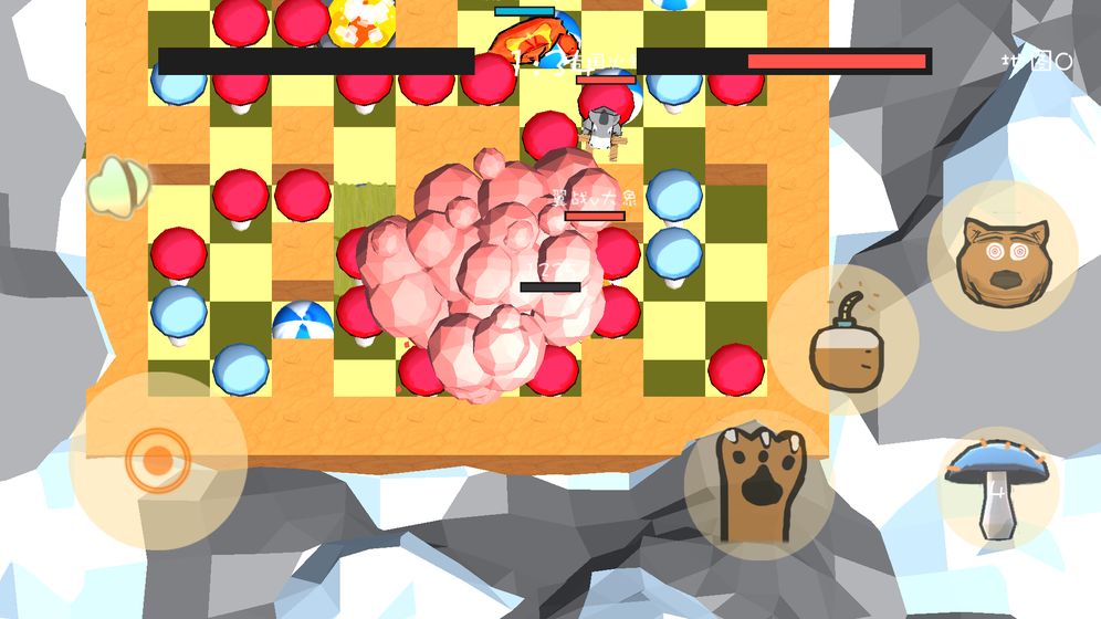 如何获得分数? 用蓝蘑菇围住红蘑菇会发生爆炸,爆炸的红色蘑菇会变为分数。