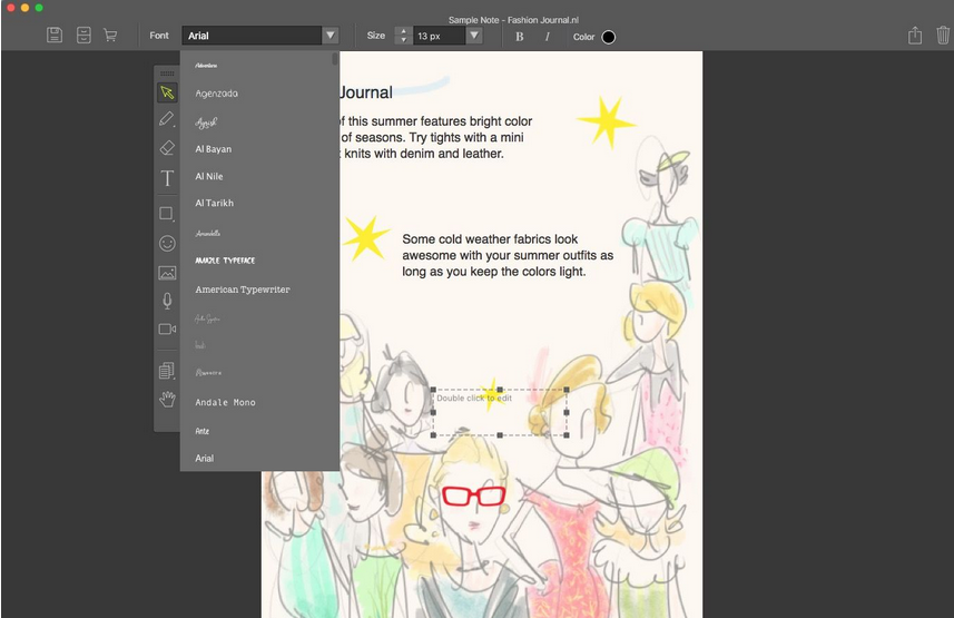 Mac中用户还能够在笔记中插入图片/音频文件、添加多种色彩的文本框等内容。