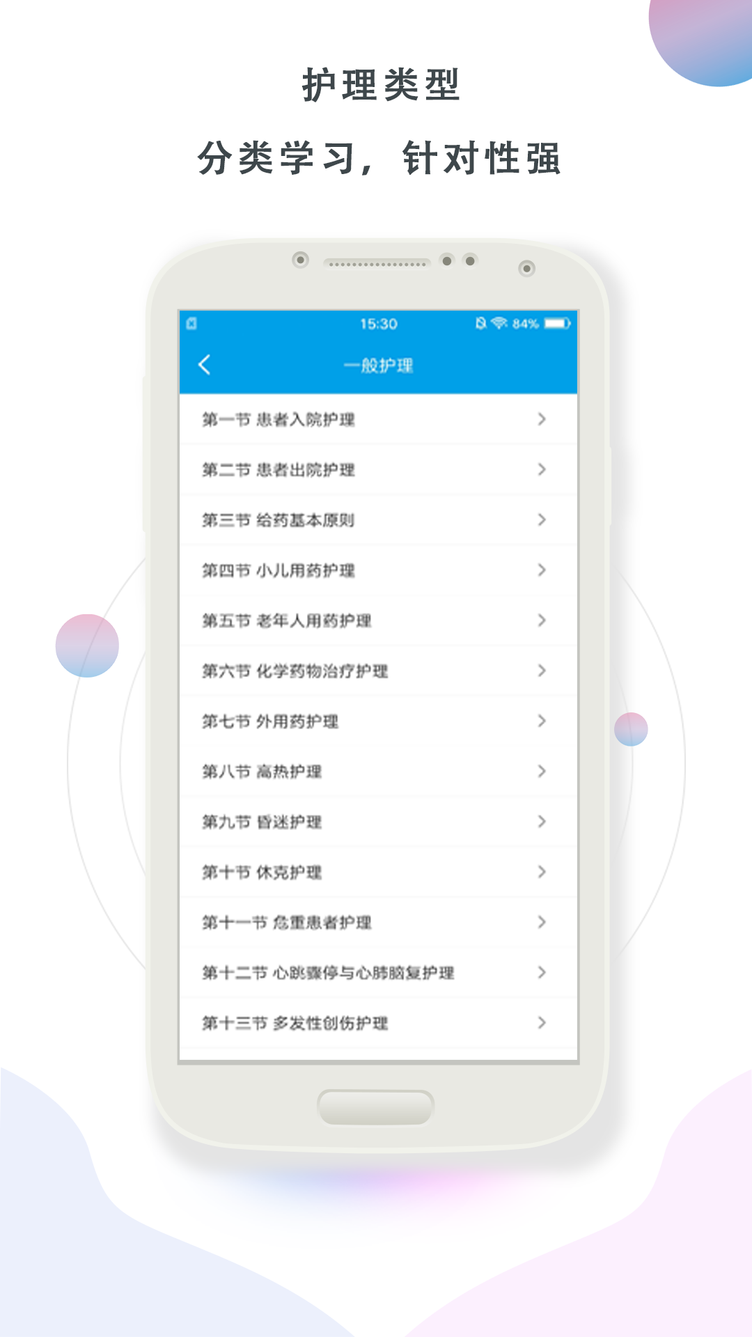 护理帮手是帮助护士进行知识巩固的一款学习软件,你可以在这里进行知识自测,看看自己哪方面的知识比较薄弱,这里有完整的各项护理知识,进行了非常完善的分类,还有护理相关的文章推送。