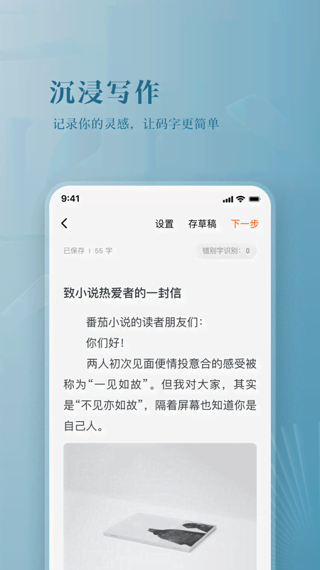 离线写作:支持断网状态下的码字,文字本地存储,联网后自动同步
