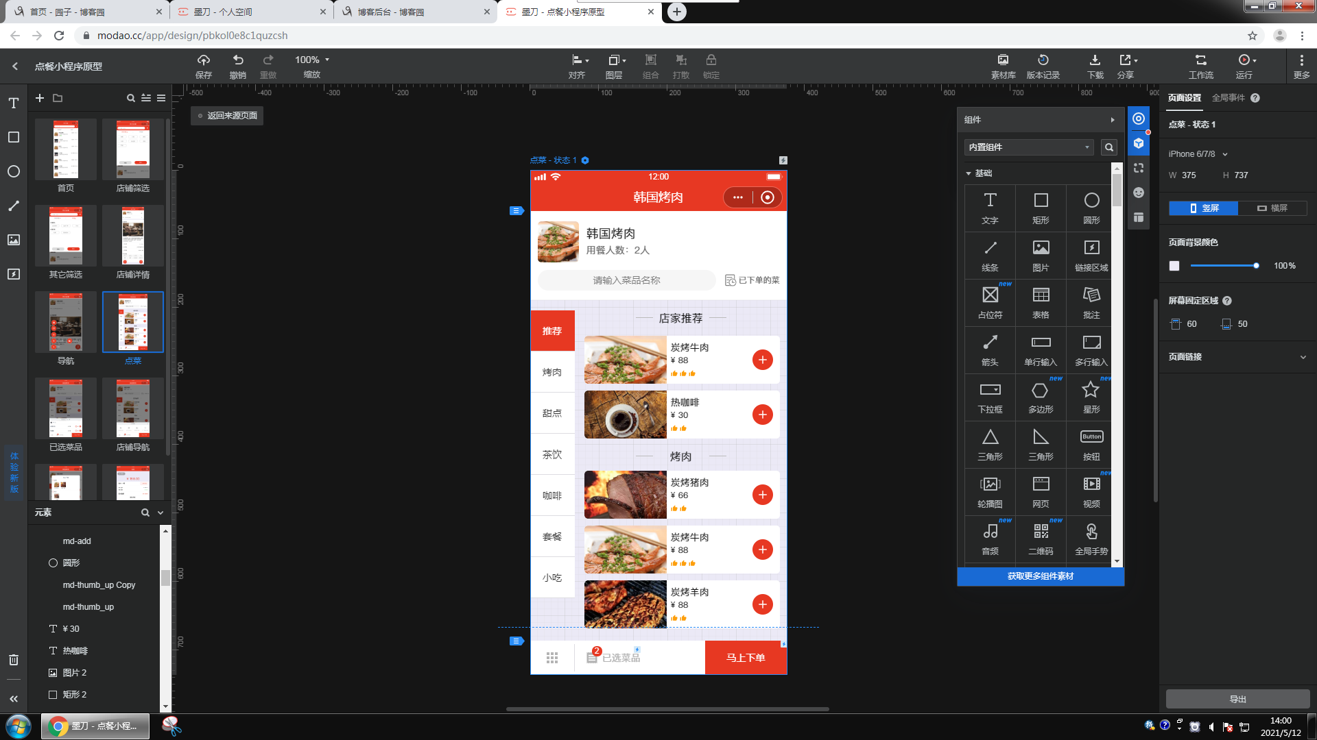 内置丰富的组件和模板