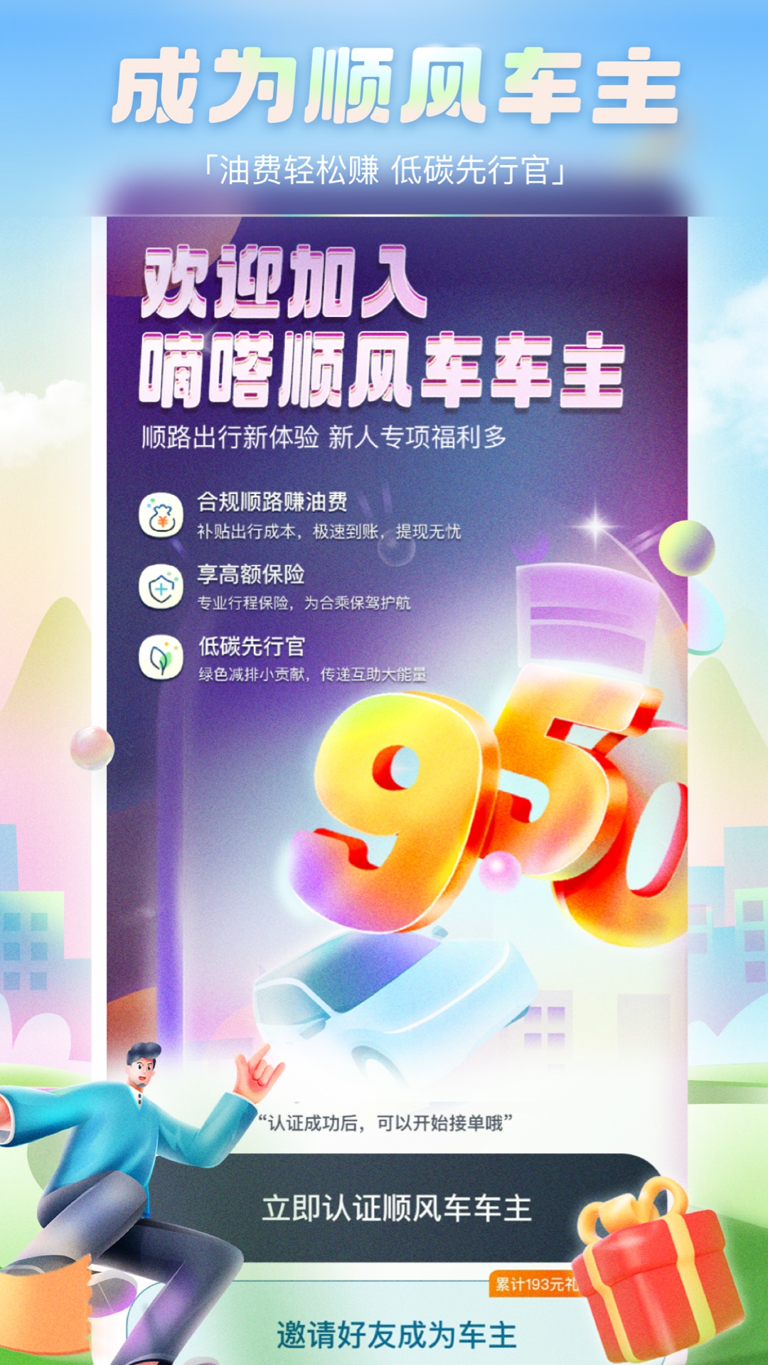 为用户认证每次顺风出行的碳减排贡献值
