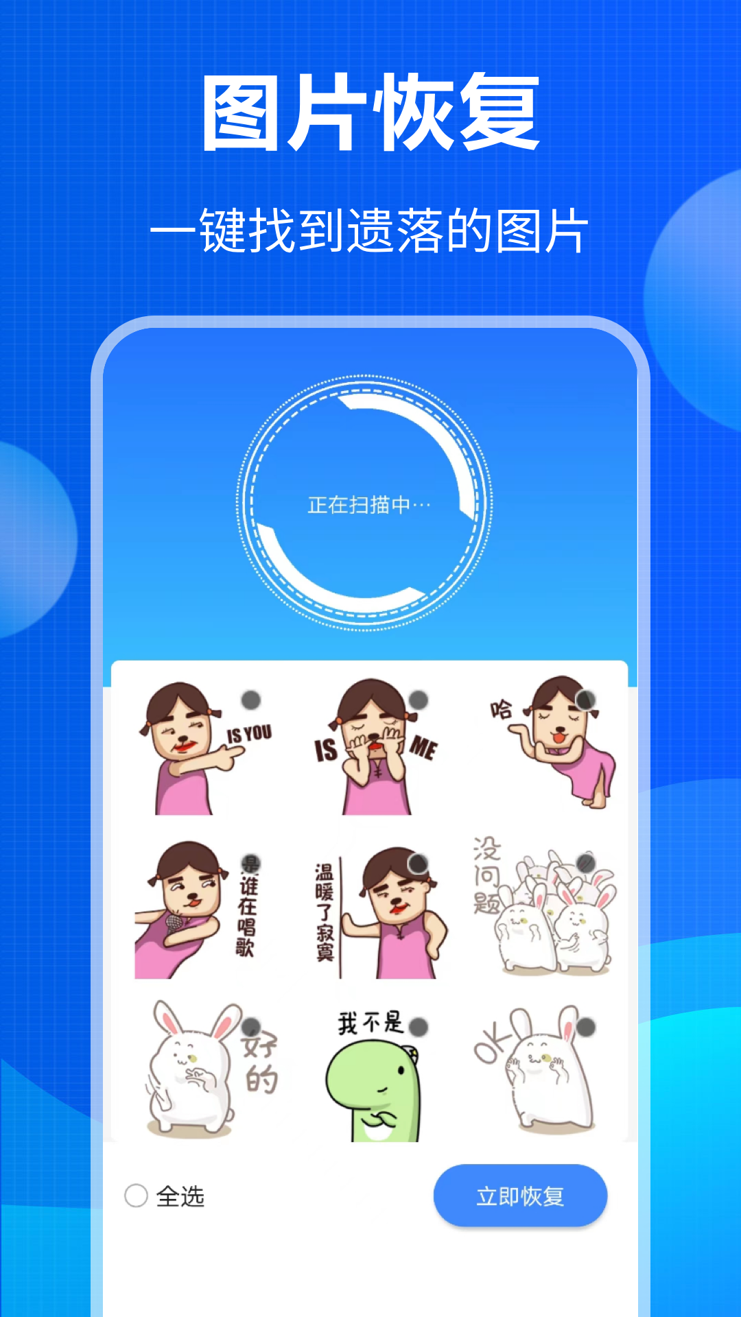 微信数据恢复App是专门用于恢复微信中误删或丢失数据的工具,以全方位扫描手机里的照片,平时聊天记录的照片、手机缓存里的照片,自己怎么都找不着,那就点开手机照片查找,让我们来帮助你查找出手机里深层次的照片,一键导出保存到自己的相册。同时提供文件、音频、视频、文档的查找,不用费心在各个文件里查找,省心省力。华军软件园提供微信数据恢复app官方版下载地址,有需要的用户可免费下载使用!