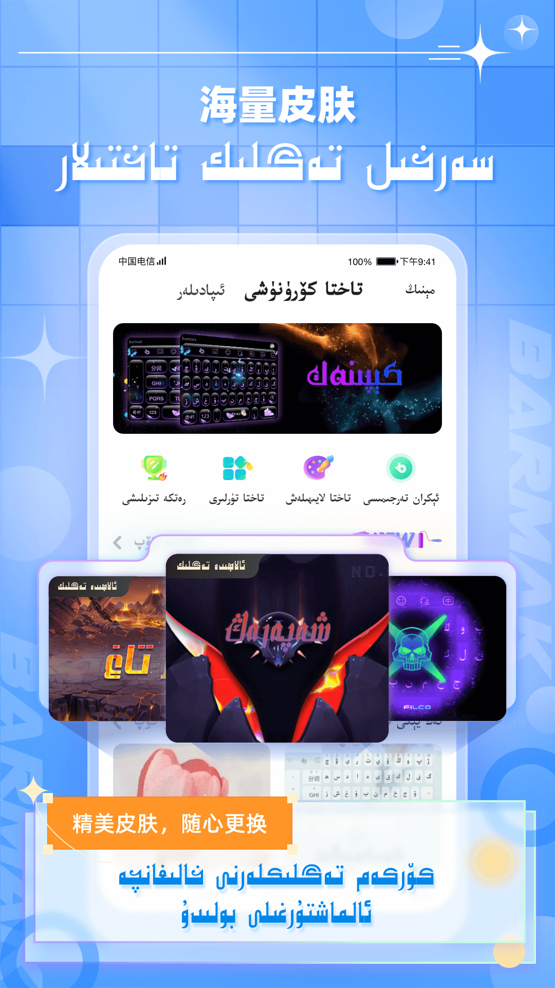 【海量精美皮肤】超多风格精美皮肤随心换,支持自定义键盘皮肤;