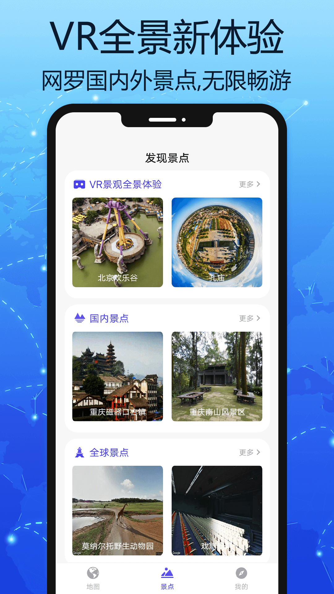 3. 全球景点, 包含了世界40多个国家的景点,让您不用出国就能感受异域风景。