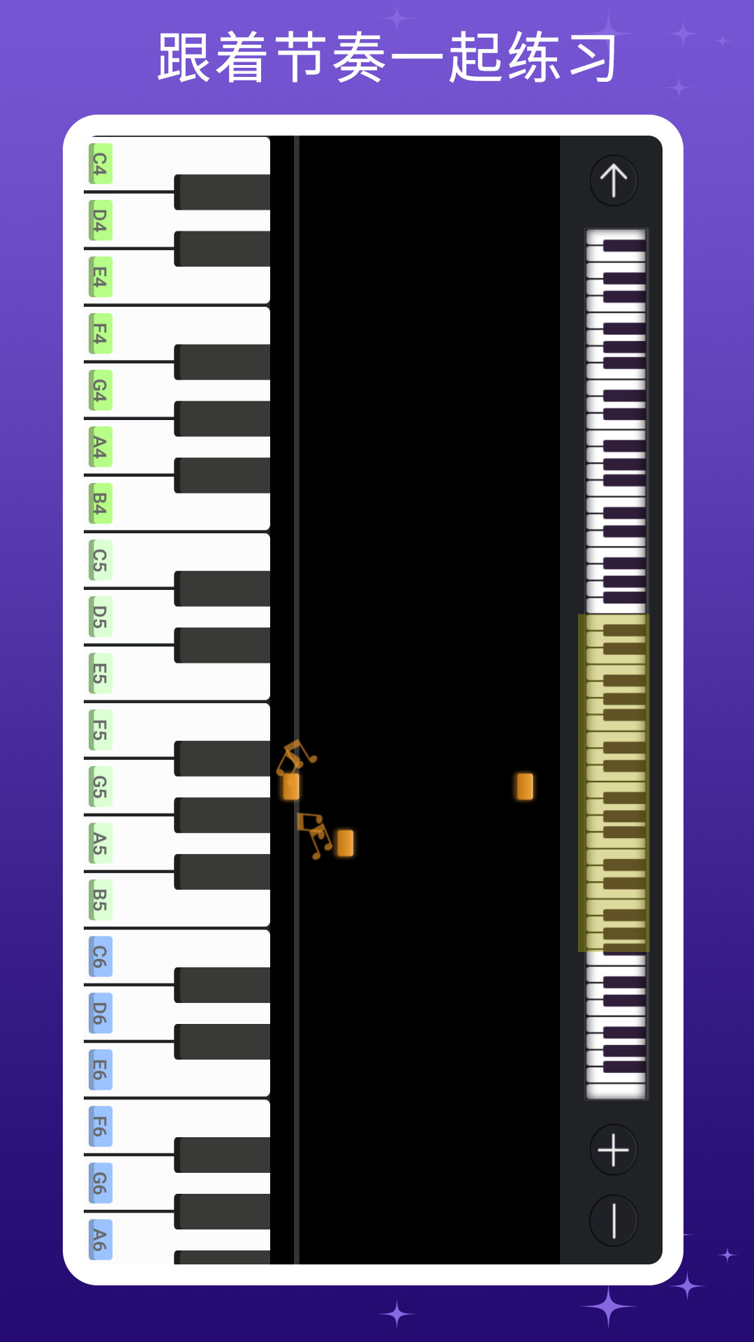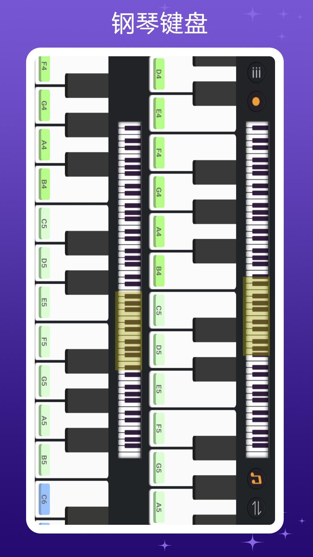 【仿真按键 流畅弹奏】随身钢琴乐队提供全部钢琴琴键,选择不同区域,即可切换不同声调,高度仿真音效,带给你无与伦比的真实模拟钢琴体验!