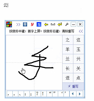 1.直接在云手写输入法软件窗口用鼠标写出笔画