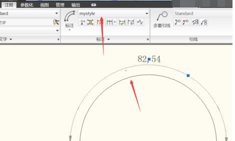 6.然后点击一下弧长标注,然后在样式选择成我们自己新建的。样式就会变化。
