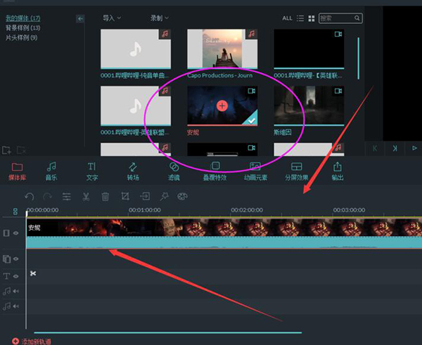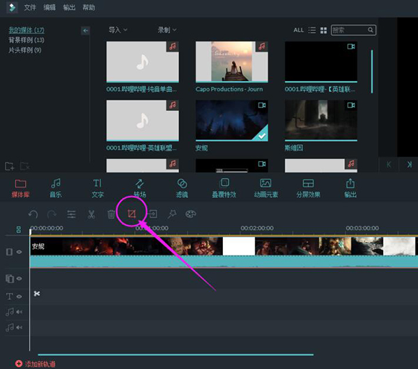 2、点击视频上的加号,把视频添加到轨道上面