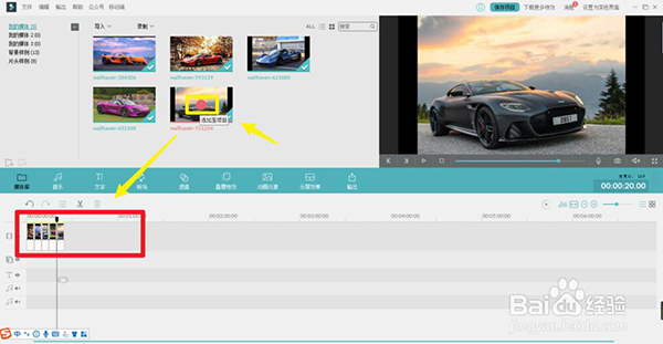 1、打开万兴喵影,点击素材中间的加号,把所有的素材挥着需要使用的素材添加至项目,如图所示