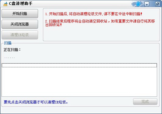 1.开始扫描后,将自动清理垃圾文件,请不要在中途中断扫描