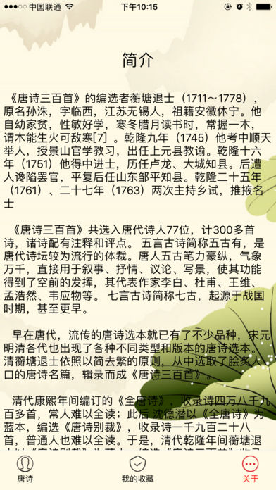 2楼 华军网友 2021-01-24 13:50:16最近好多人推荐唐诗三百大全,体验了一下还不错。