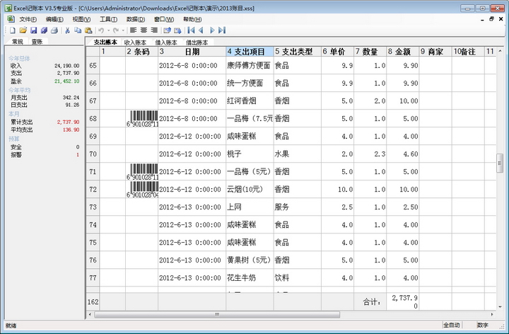 2、Excel记账本能够方便的对数据进行分类汇总和数字预警