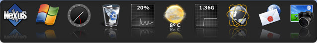 Nexus提供高效的模块(widgets),例如一个会说话的数字/模拟时钟,它能同步互联网上的时间服务器时间,一个回收站,一个CPU计数器,一个电子邮件检测器,以及天气、网络和内存模块。