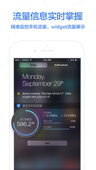 -流量监控:腾讯手机管家AppStore实时流量监控,避免流量超额