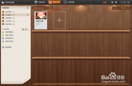 3、进入某个书柜后,选择【打开文档】即可添加某文档在百度阅读器中进行浏览。