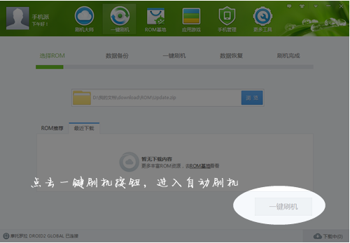 2、点击一键刷机按钮,进入一键刷机的功能界面