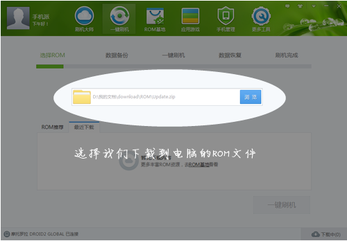 3、点击【浏览】按钮,选择刚刚我们下载到电脑的 ROM文件