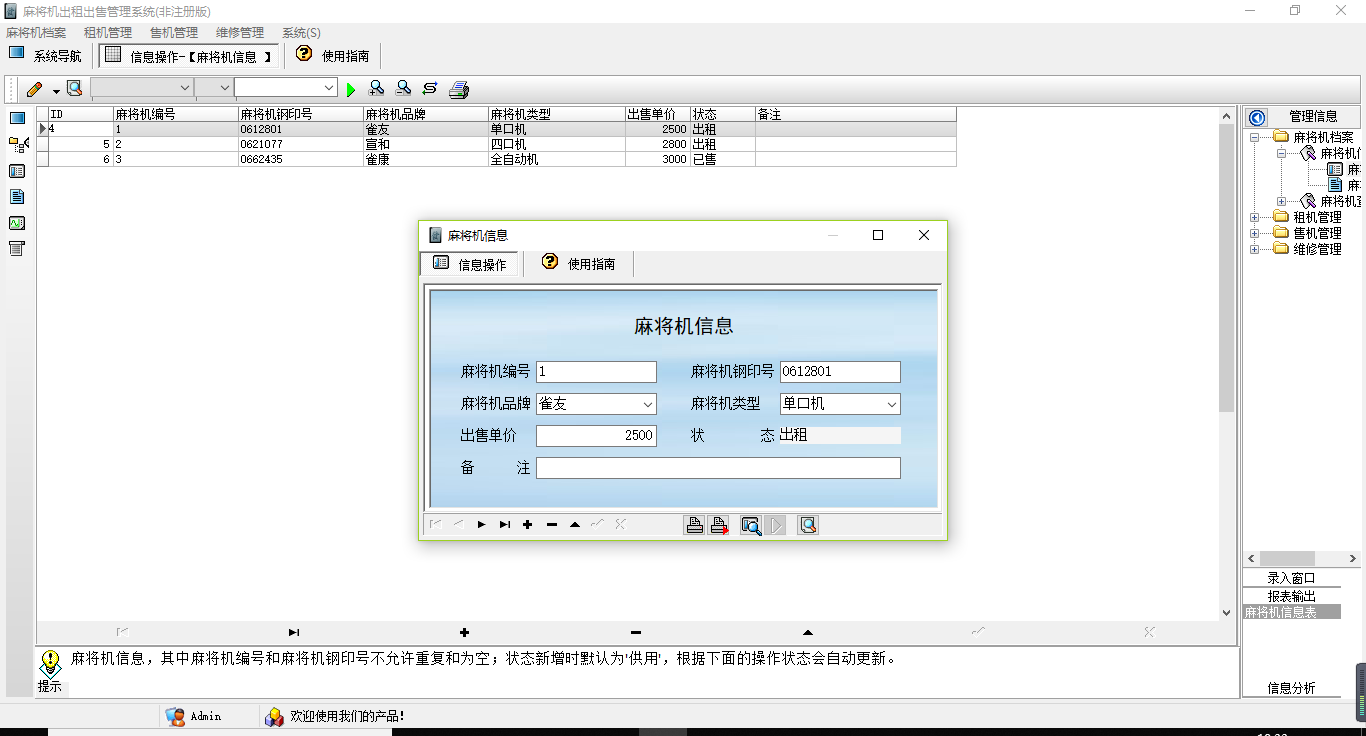 麻将机出租出售管理系统