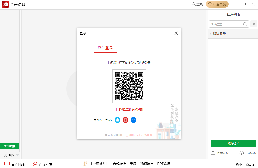 金舟多聊是一款专为提升多账号管理效率与沟通体验设计的即时通讯(IM)辅助软件,尤其适合需要同时操作多个微信、QQ、企业微信等社交账号的用户(如微商、客服、运营人员、销售团队等)。它通过多账号聚合登录、消息智能分发、快捷回复库等功能,帮助用户告别频繁切换账号的繁琐操作,实现高效沟通。喜欢金舟多聊软件的朋友快来华军软件园下载体验吧!