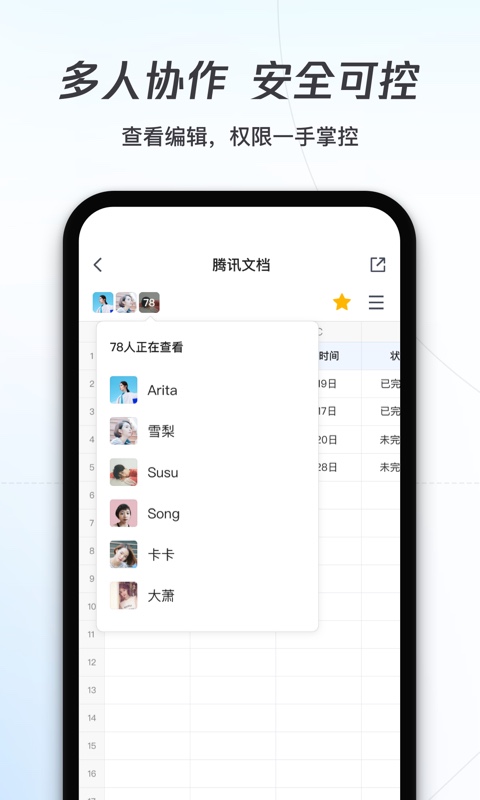 腾讯文档是一款支持随时随地创建、编辑的多人协作式在线文档工具,拥有一键翻译、实时股票函数和浏览权限安全可控等功能,以及打通QQ、微信等多个平台编辑和分享的能力。