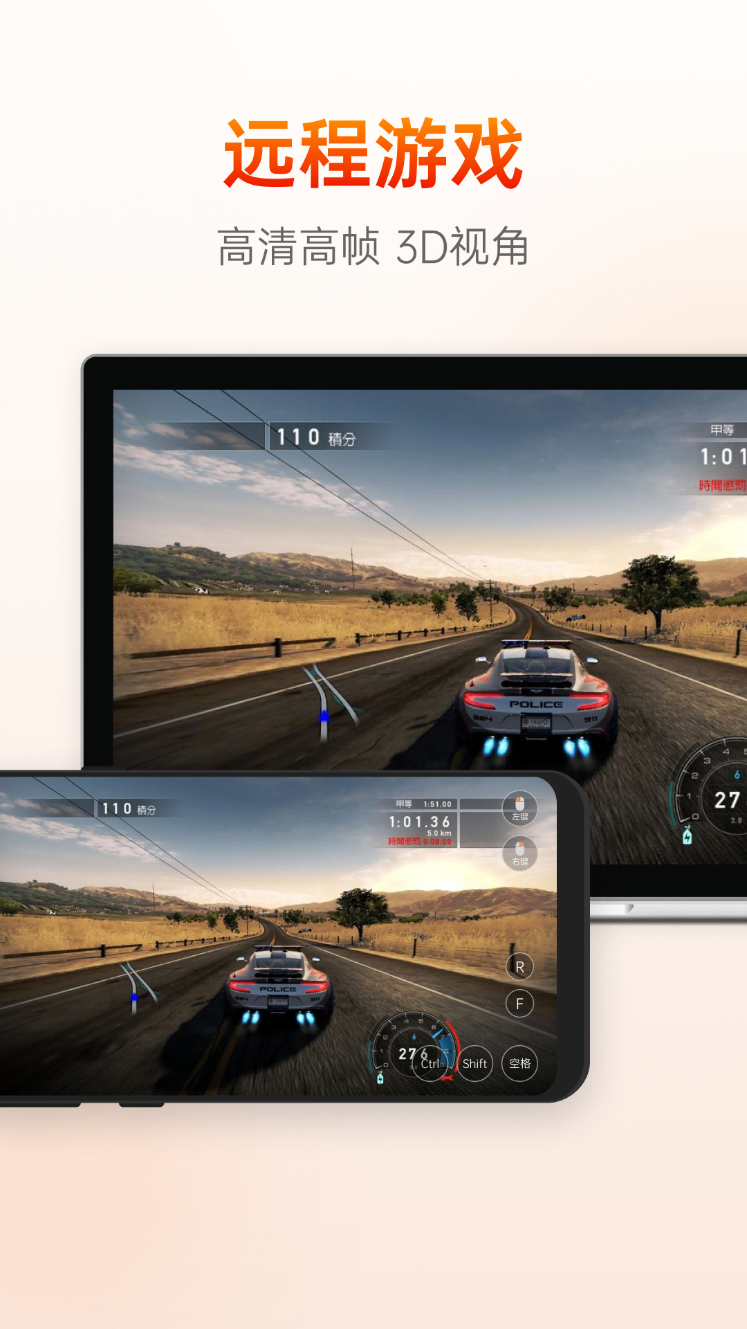 专属游戏服务器,保证稳定、流畅的远控体验;手机端远控,让你的电脑游戏也能在手机端畅快操作;专属游戏键盘、支持自定义按键、支持长按交互等,助你登上王者之巅。