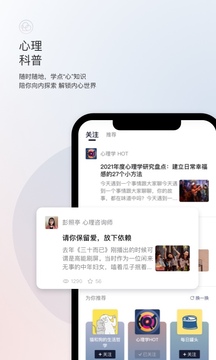 用户友好界面:采用柔和色调与简洁布局,减少心理服务类App常有的“沉重感”,操作流畅易上手。