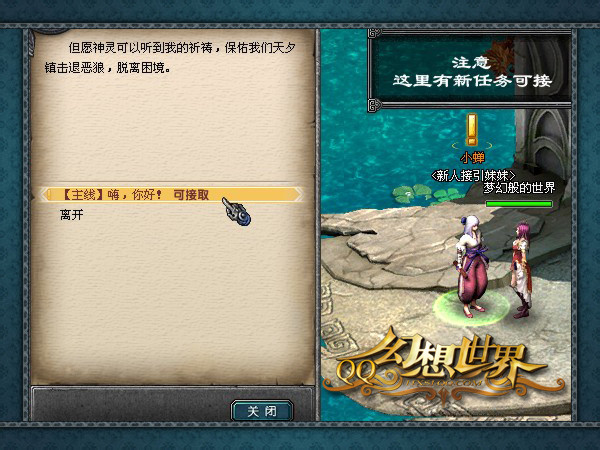 NPC对话框选项中显示可接取的【主线】任务,点击读取任务内容。