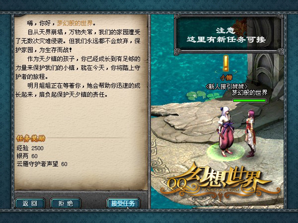 1、当某位NPC有适合您接受的任务时,该NPC的头顶会出现一个金色惊叹号的图标。