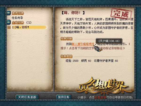 第五步, 点击“完成”按钮,大功告成,正式开始QQ幻想世界之旅吧