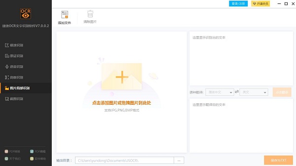 1、图片识别:图片文字识别软件可以高效的识别各类复杂字体,将JPG、BMP、PNG、TIF等格式图片识别为TXT,识别率是很高的。