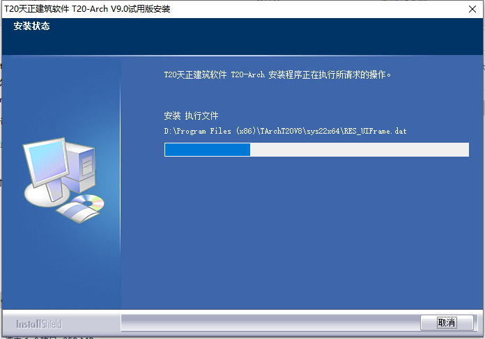 6、天正建筑2014的安装过程大约需要5分钟,请耐心等待。