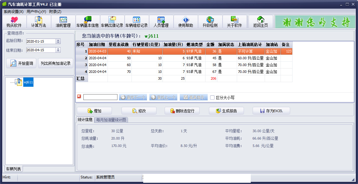 1楼 华军网友 2020-10-10 09:22:38汽车油耗计算工具很好用,谢谢啦!!