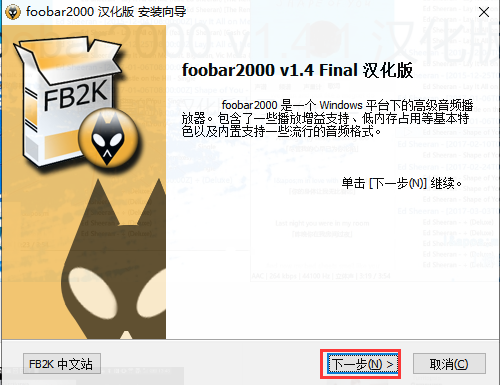 (x86)foobar2000。),点击下一步,如图