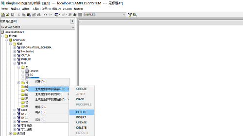 注:选中某表,右键—>生成对象脚本到窗口—>系统会帮我们生成 基本的标准金仓SQL;