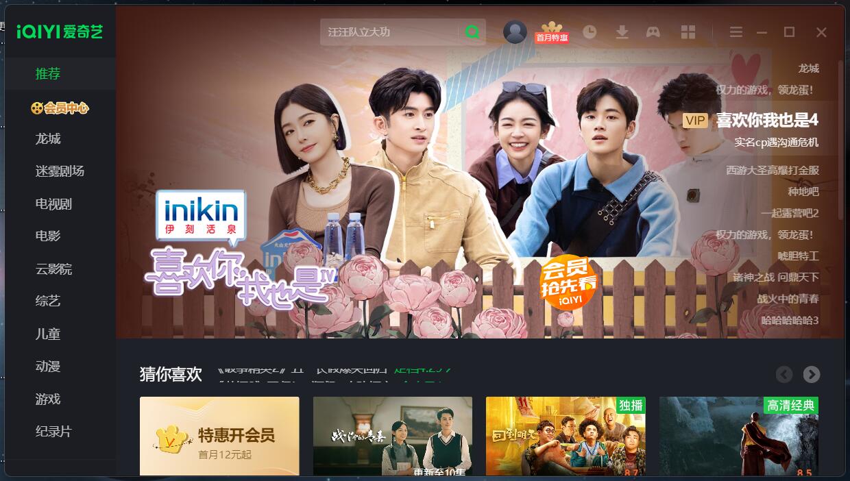 3.爱奇艺视频客户端安装成功之后,出现如下界面;